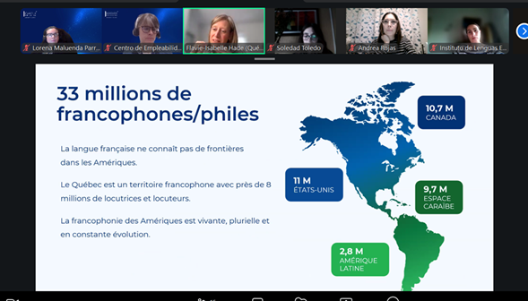 Dorine Levy, encargada de Francofonía del ILEC, valoró la instancia y señaló: “Este tipo de actividades permite acercar recursos concretos y pertinentes a quienes enseñan y aprenden francés, además de visibilizar la riqueza de la francofonía en las Américas y su potencial formativo en distintos contextos educativos”.